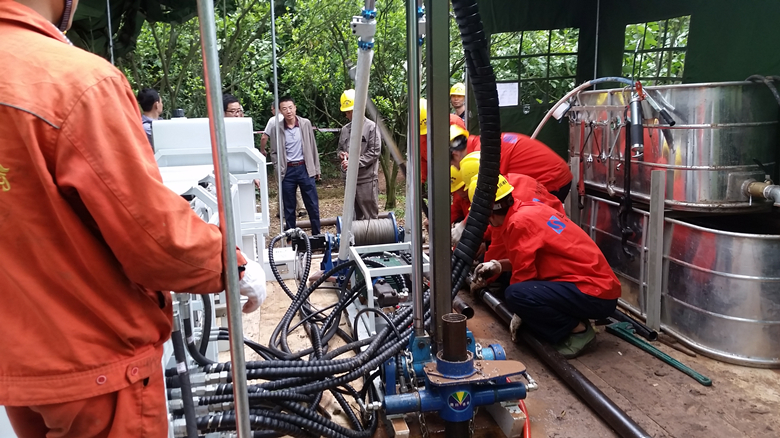 陽書記在查看項(xiàng)目現(xiàn)場(chǎng),了解設(shè)備運(yùn)轉(zhuǎn)情況及工人操作后,對(duì)項(xiàng)目作出指導(dǎo):一是該項(xiàng)目是我院在深孔鉆探設(shè)備方面的革新及工藝的改革的試點(diǎn)項(xiàng)目,施工班組和管理人員務(wù)必高度重視,勇于挑戰(zhàn);二是要求項(xiàng)目組人員要在如何使設(shè)備經(jīng)濟(jì)高效的運(yùn)轉(zhuǎn)、發(fā)揮設(shè)備功效上探索研究;三是通過該項(xiàng)目歷練培養(yǎng)優(yōu)秀操機(jī)手,為今后類似設(shè)備的運(yùn)用儲(chǔ)存技術(shù)力量;四是通過對(duì)設(shè)備的熟悉、掌握,更加注重科技創(chuàng)新,以節(jié)約成本,推動(dòng)我院在深孔鉆探領(lǐng)域的新發(fā)展。