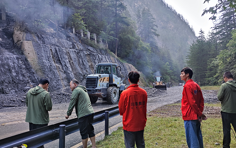 現場調查復核后,川勘集團技術人員將復核情況報請集團地災專家“會診”,并將出具的《關于平石頭溝泥石流預警復核說明及處置建議》提交九寨溝管理局。7月28日下午17:00左右(預警后22小時,處置建議上報后7小時),泥石流再次越頂沖出至下方道路路面,造成道路臨時中斷,19:40現場清淤完畢,道路恢復通行,由于本次預警及時,應急準備工作充分,現場未造成人員傷亡。